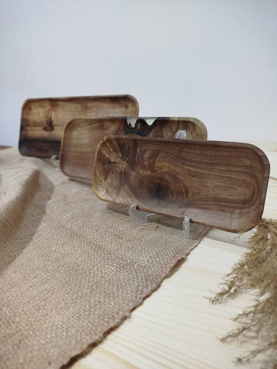 دیس فینگر فود / پیش دستی سرو ست سه تیکه چوب گردو و رزین / لایه محافظتی روغن گیاهی مخصوص ظروف چوبی و سرو خوراکی /